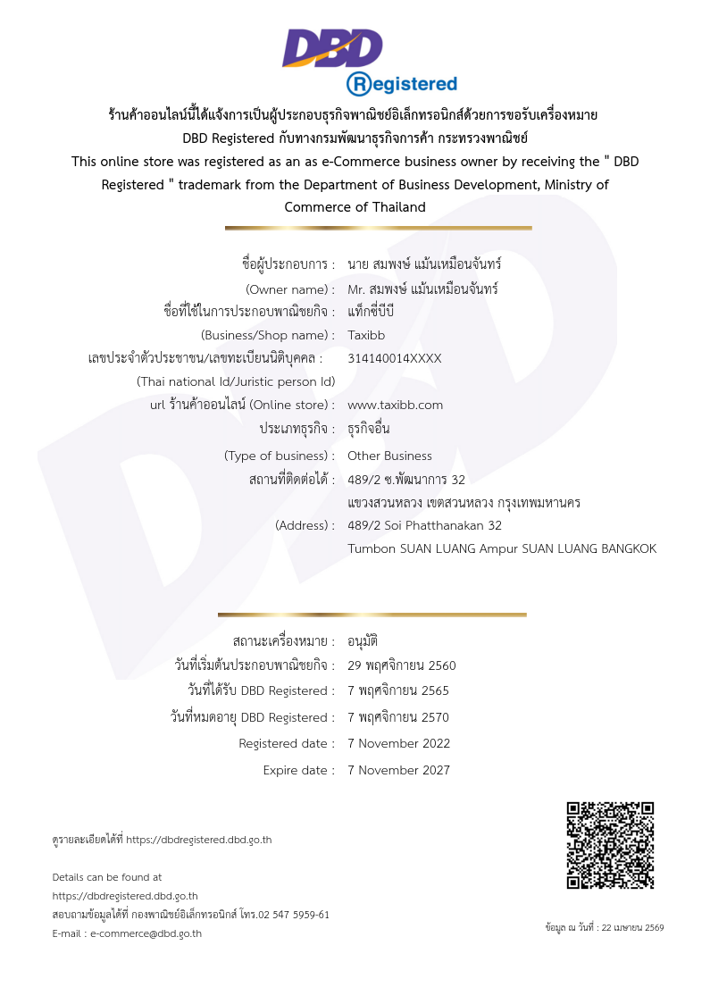 Taxibb ใด้รับเครื่องหมาย DBD ไม่ต้องกังวลเรื่องการโอนเงิน